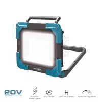 FOCO LED DE TRABAJO 20 V 2500 lm (SIN BATERÍA NI CARGADOR), VOLTAJE NOMINAL 20 V DC (BATERÍA DE ION LITIO), POTENCIA MÁXIMA 30 W, SE COMPONE DE 60 LED, 3 NIVELES DE LUMINOSIDAD 1200/1900/2500 lm, TEMPERATURA DE LUZ ENTRE 6000-7000K, ÁNGULO DE HAZ 120°, CON SALIDA USB 5 V-1 A, PIE REGULABLE Y ASA DE TRANSPORTE, 17,7 x 20,4 cm
